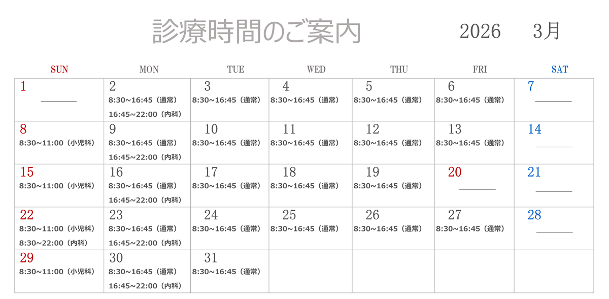 休日に小児科診察希望の方は、診察をしているか事前に電話でお問い合わせください。